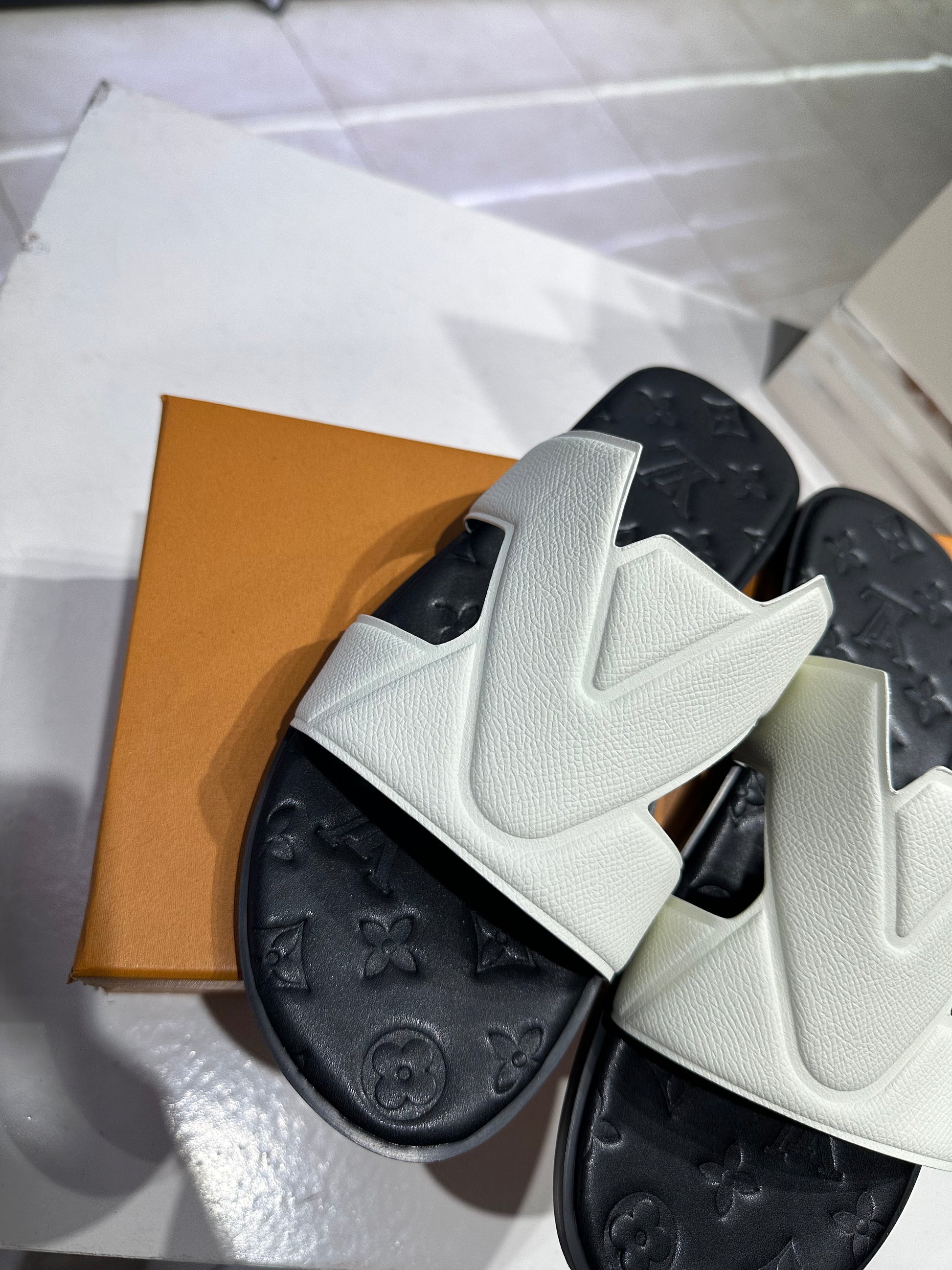 The LV Oasis Mule in White is a sophisticated slipper that combines luxury with comfort. Designed with premium materials, it offers durability and an elegant aesthetic. Ideal for both indoor and outdoor use, its ergonomic design supports the foot structure, enhancing comfort levels during wear.